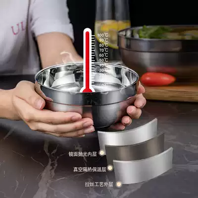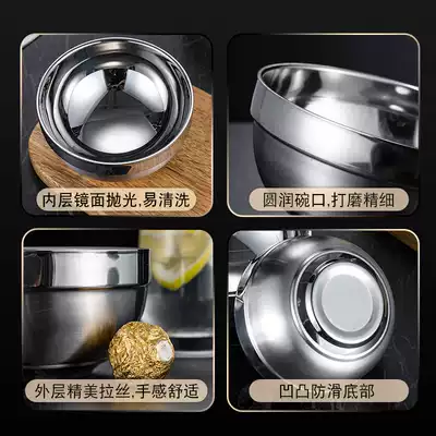 Thickened food grade 304 stainless steel bowl double insulation anti-hot kindergarten children students adult household Rice Bowl