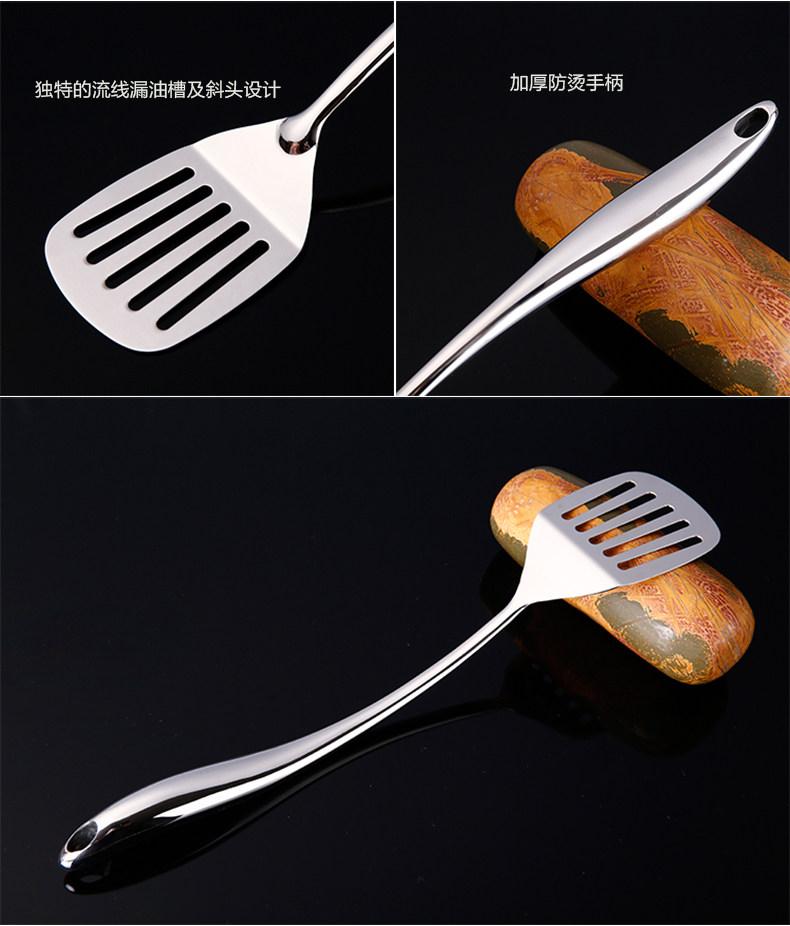 Stainless steel pan shovel fried spoons sautteed soup spoons spoon leaky spoon kitchenware thickened frying and shovel anti-scalding handle Multi-province