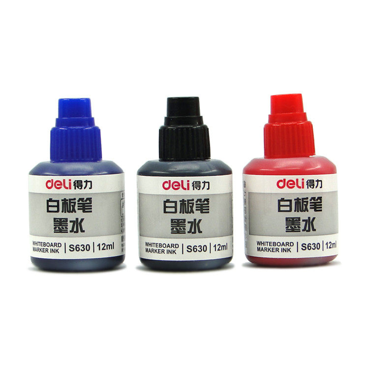 Deli S502 whiteboard pen can ink large capacity black blue red 10 plus two bottles of matching ink easy to wipe