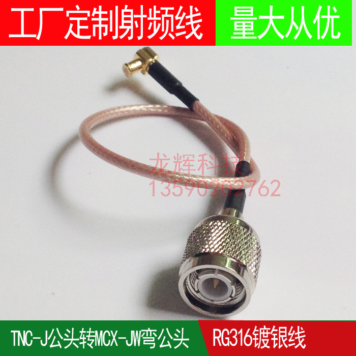 TNC-J male (inner screw inner needle) to MCX-JW male elbow RG316 silver-plated jumper extension cable