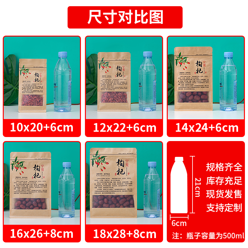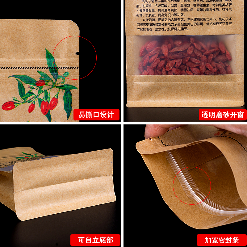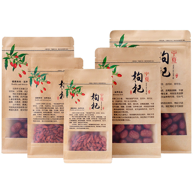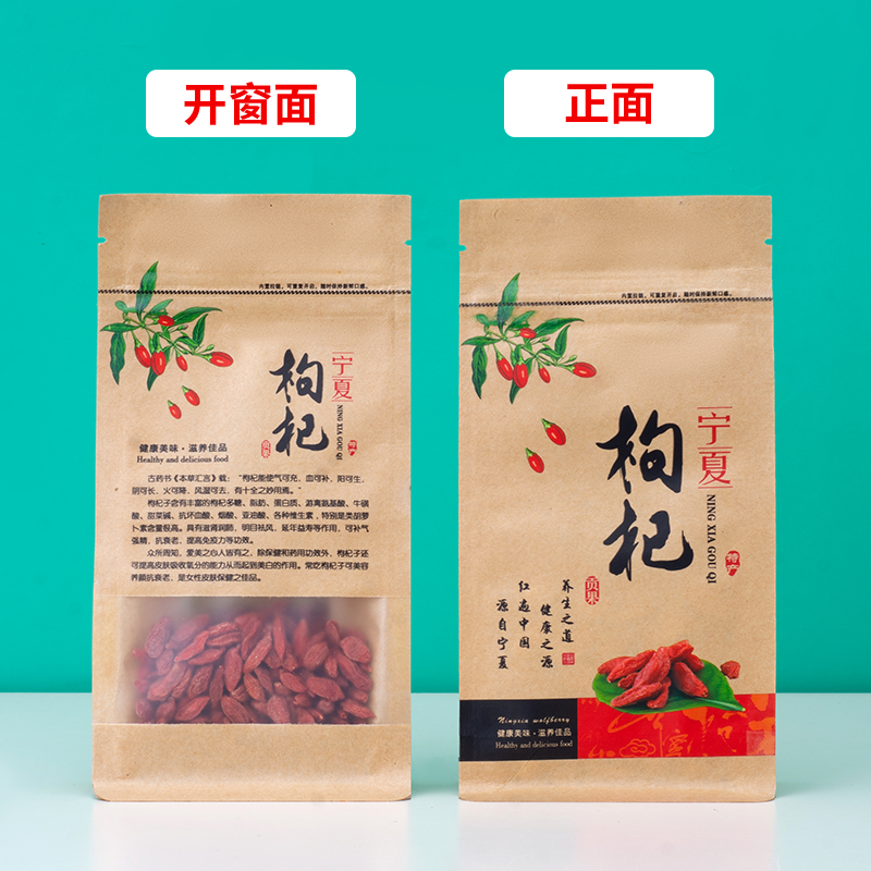 Ningxia wolfberry packaging bag eight-side sealed window kraft paper self-sealing bag 3D three-dimensional bag Food packaging customization 50