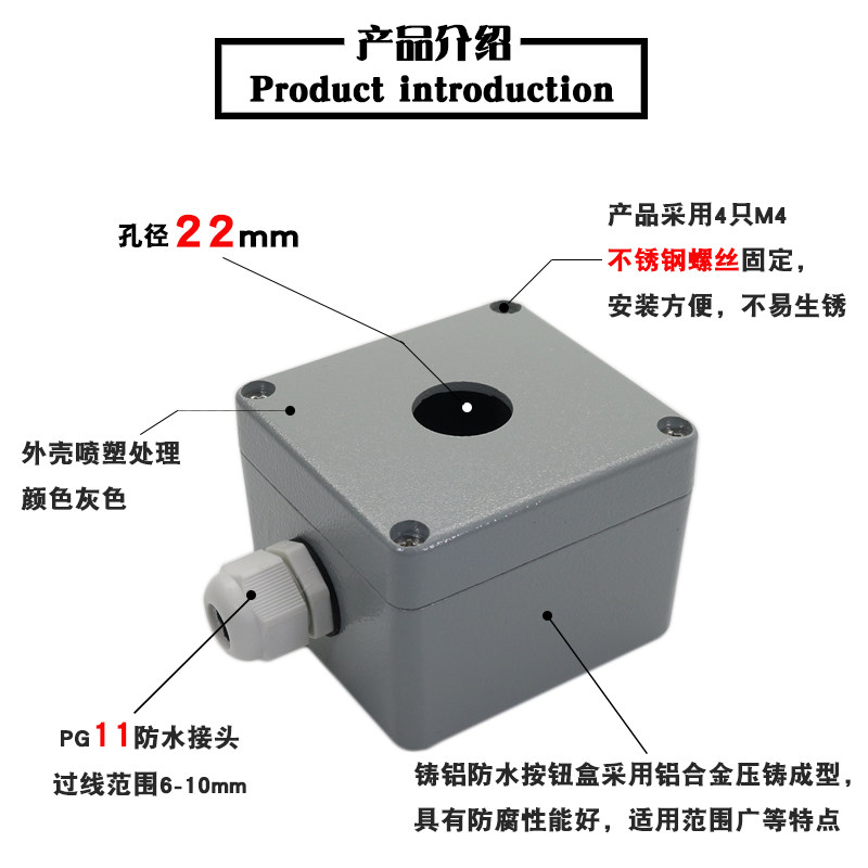 Cast Aluminum Button Case Metal Button Case Single Hole Waterproof Switch Box Emergency Stop Control Case 22mm Button Case 1 Hole