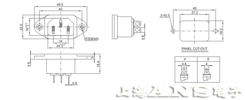 Product word socket AC power outlet 15A pure copper 3-foot product word with ears Electric car computer power outlet
