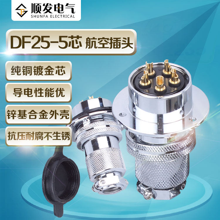 Connector Aviation plug GX25-5P (5 core) DF25-5T flange 25M plug socket