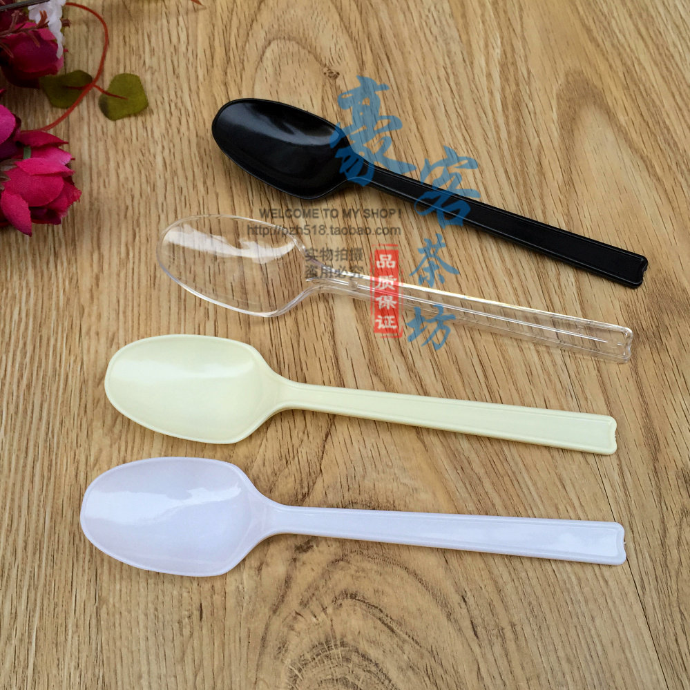 Independent Packaging Thickened Plastic Spoon Western Meal Spoon Congee Spoon Large Horn Soup Spoon Black Sweet Spoons 100 Only
