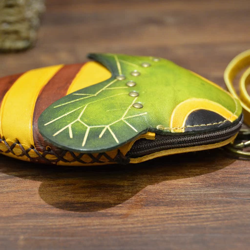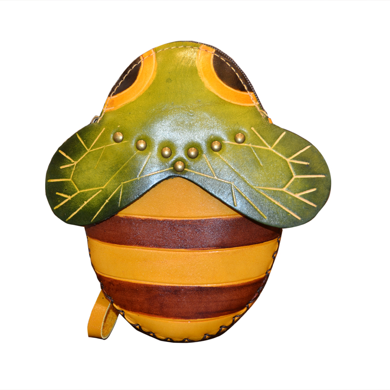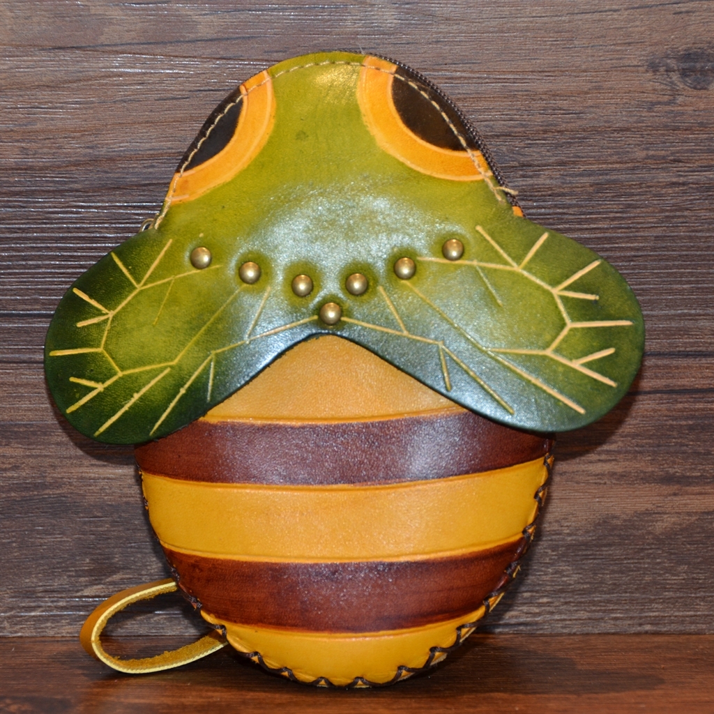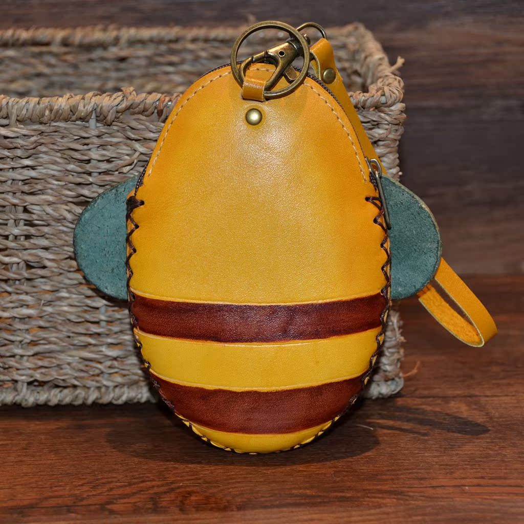 Female handmade leather coin purse cartoon small wallet mini coin bag cute key bag creative small gift bee