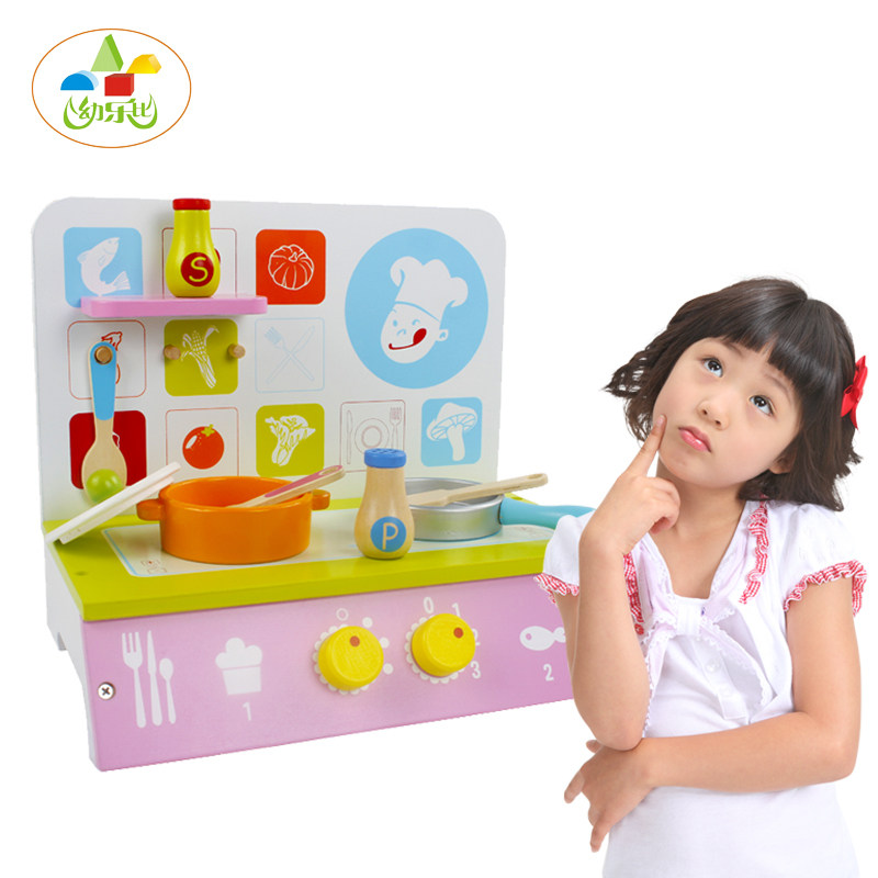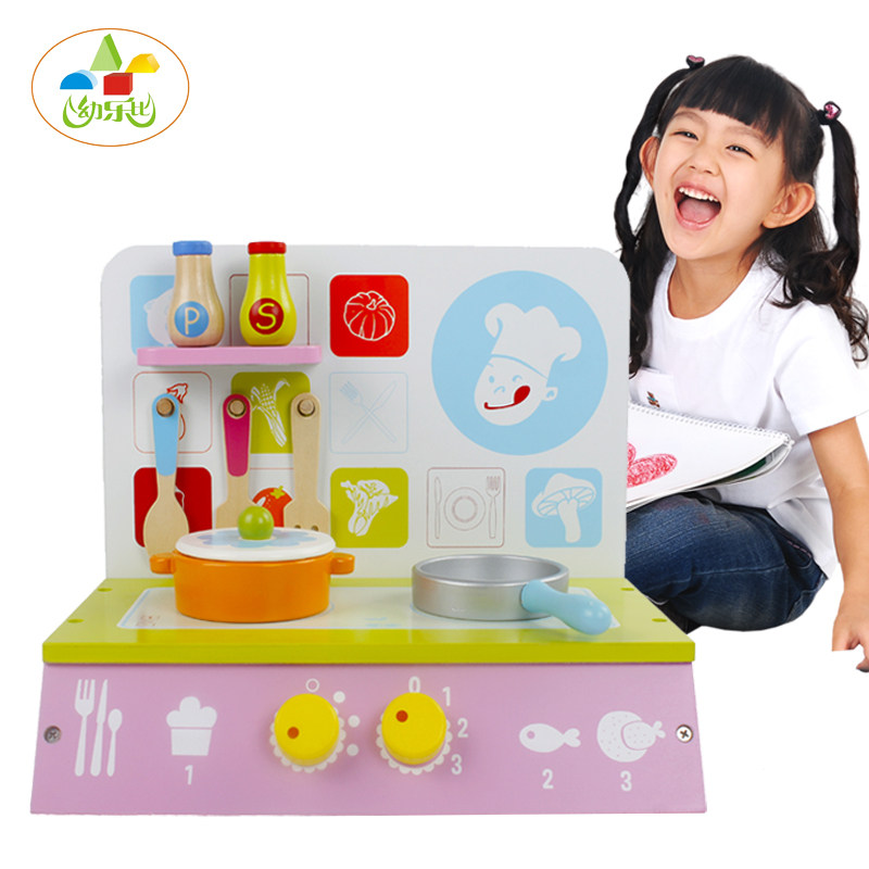 Wooden simulation kitchen gas stove plays a family wine toy set for boys and girls to cook wood