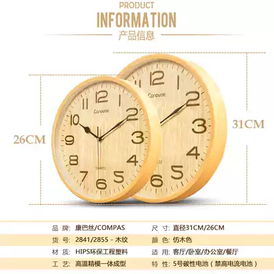 Keno Time wood grain clock living room wall clock design sense fashion creative silent clock simple bedroom quartz clock