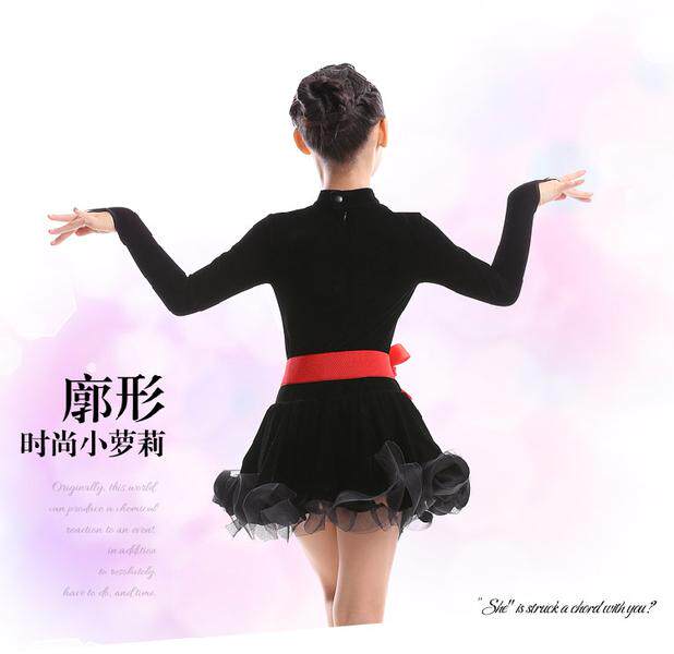 2020 new autumn and winter Latin dance suit children long sleeves Latin dress girls race dance gold velvet practice