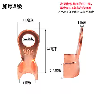 Pure copper open nose 30A copper terminal copper wire lug wire nose copper joint copper terminal national standard thickness