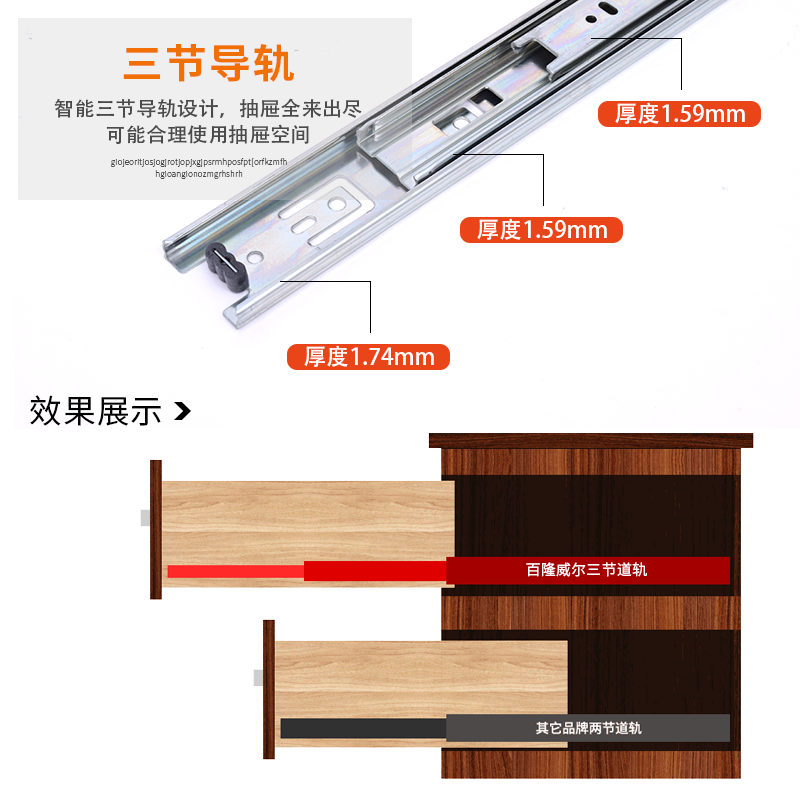Germany Blumwell damping drawer track mute rail solid ball three-section rail overall cabinet wardrobe accessories