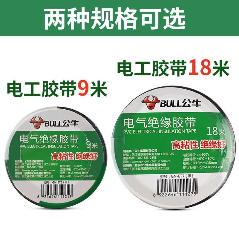 Bull electrical tape accessories Flame retardant tape PVC black low temperature waterproof 9 meters 18m insulation tape