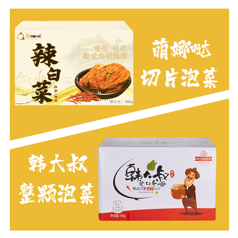 Uncle Han whole box 10 kg (whole pack) Meng Na Da 10 kg (sliced pack) Meng Na Da 10 kg whole kimchi