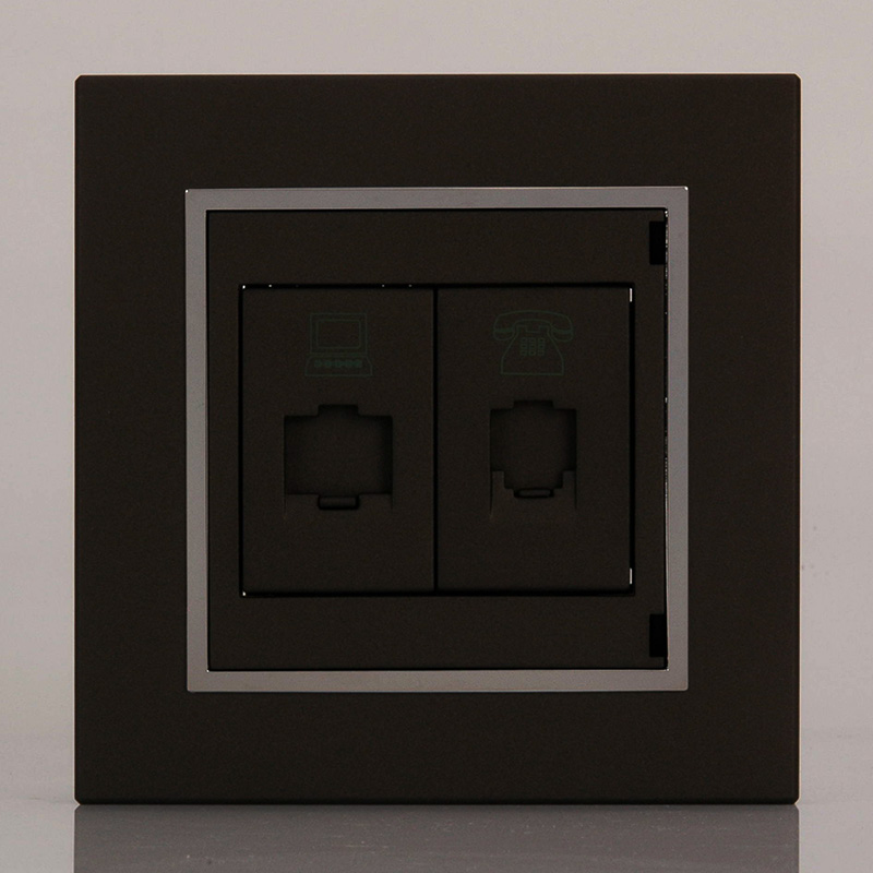 Shenzhen Tianji Deqi series 86 type computer network line telephone line double port information socket panel elegant black