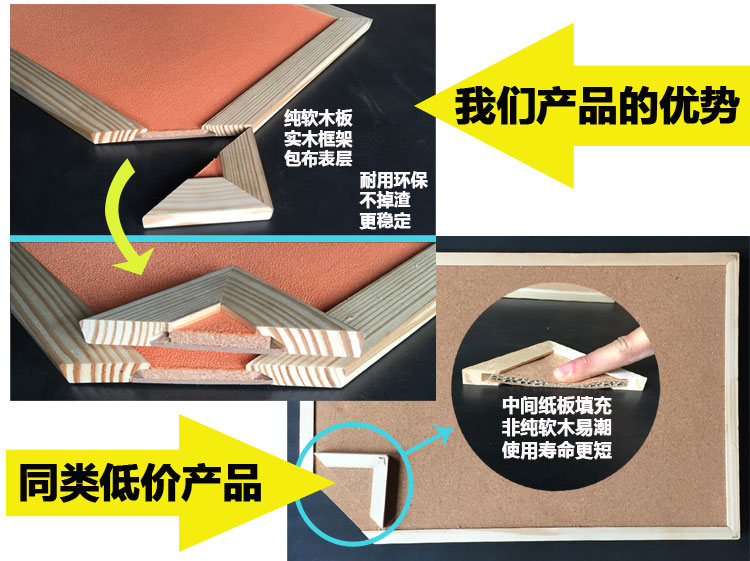 Hanging colored soft wood board frame Bab soft wood board photo wall Kindergarten with frame cork cultural wall