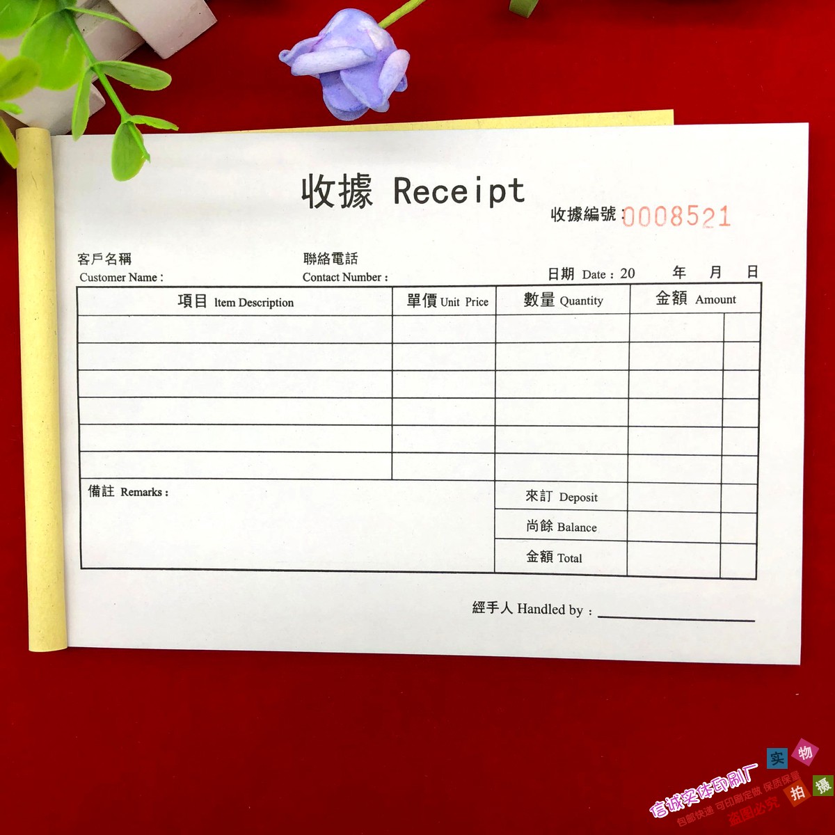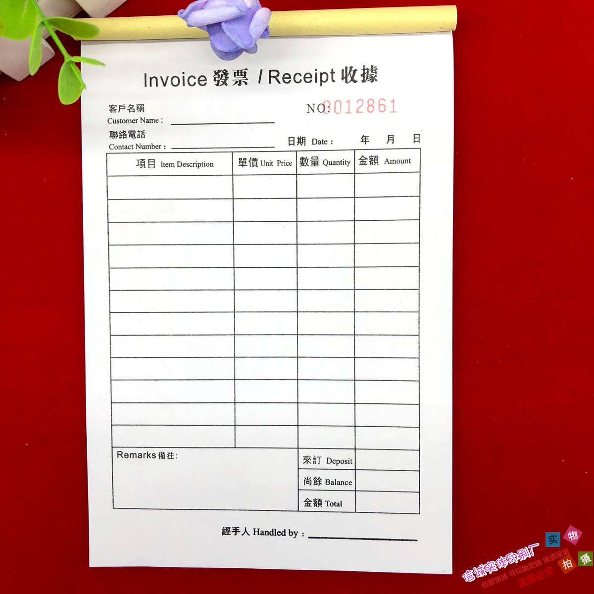 Hong Kong, Macao and Taiwan English traditional two-way receipt Invoice English single Traditional single Receipt three-way