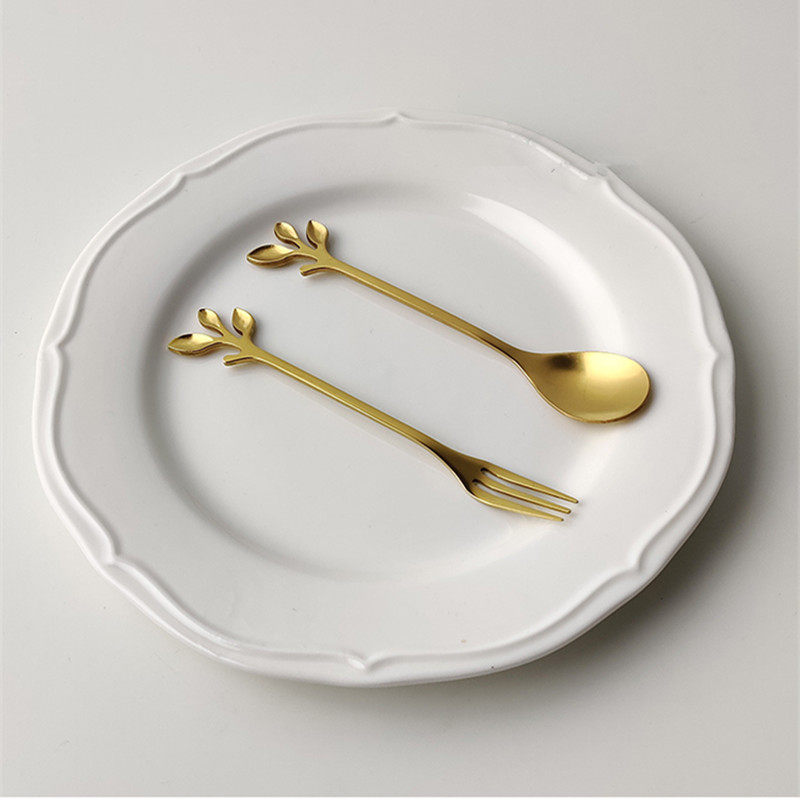 Romantic creative household stainless steel branch small spoon retro coffee spoon dessert fork spoon small spoon fruit fork