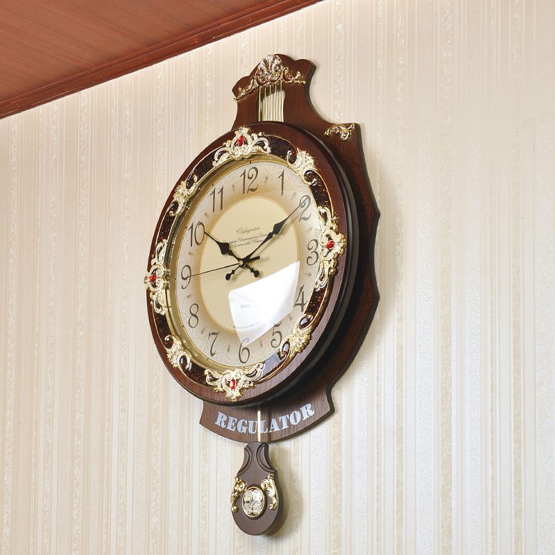 Eurostyle hung clock watch and watch solid wood living room fashion creative watch and watch brief muted quartz imitation ancient bedroom swing clock