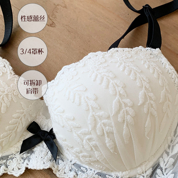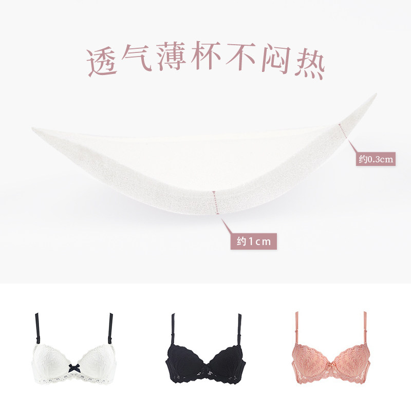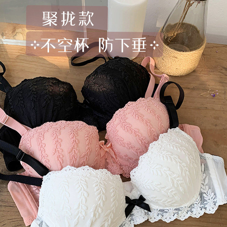 Flower house underwear women's small chest gathered girl sexy rim flat chest AA not empty cup lace bra cover set 165