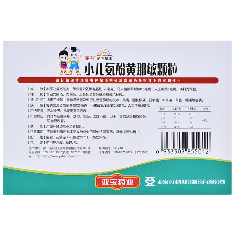Yabao Toddler Ammonia Phenol Yellow Namin Grain Rinagar 10 sacks to alleviate fever caused by children's influenza