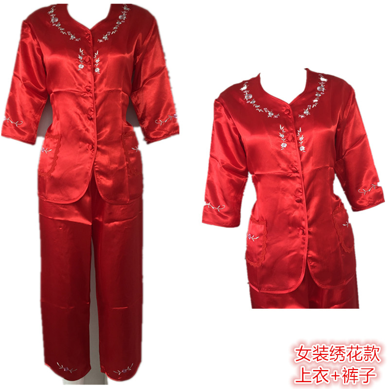Wedding pyjamas Hong Kong brides embroidered on top of their head pyjamas red show and suit traditional skirt-coat qipao to hit bottom-Taobao