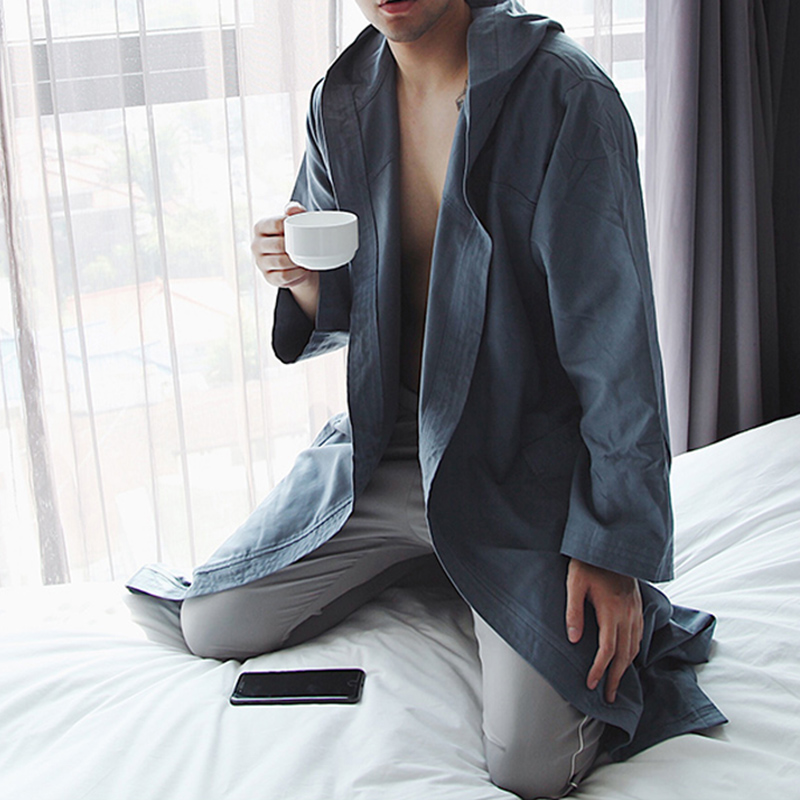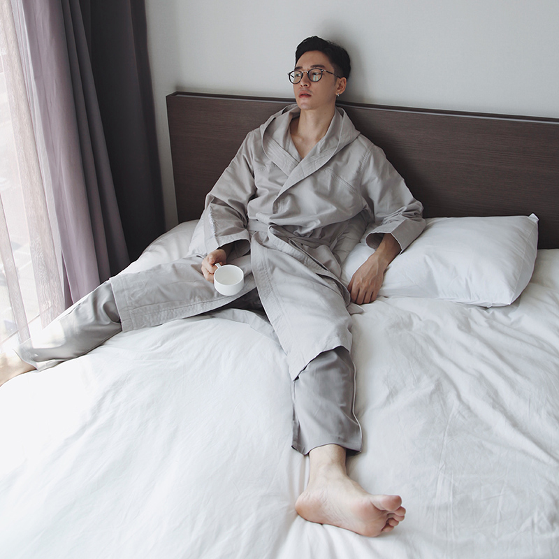 24K addiction with Huang Jingyu Gu Hai nightgown male couple spring hooded bathrobe absorbent thin bathrobe male