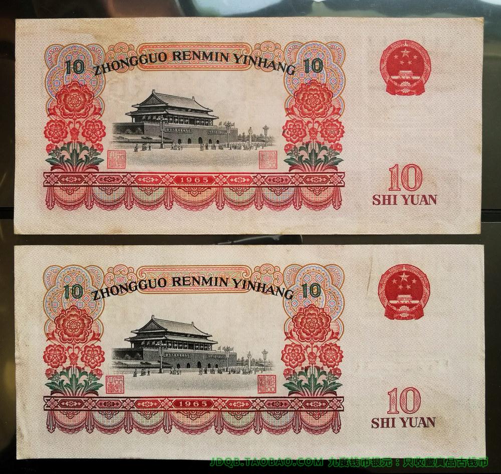 Real currency 9 - 10 yuan paper notes united in the third set of RMB 10 yuan 3 paper notes in 1965