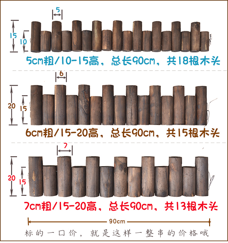 Outdoor gardening fence carbonized anti-corrosion small wooden stake fence Garden stake round wood solid wood fence Wooden fence Vegetable garden
