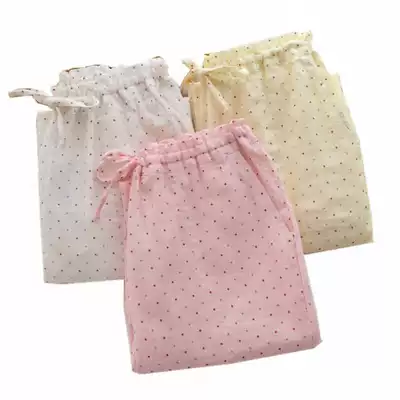 Spring and summer new cotton linen women's pajamas Japanese cotton double gauze women's trousers home pants pajamas