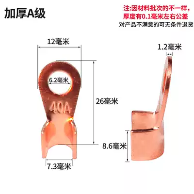 Pure copper open nose 40A copper terminal copper wire lug wire nose copper joint copper terminal national standard thickness