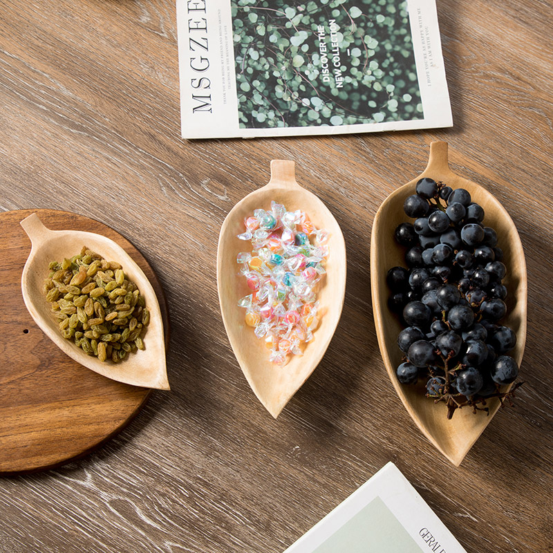 Yili creative leaf dried fruit plate solid wood candy fruit plate home Japanese Nordic living room snacks snack plate