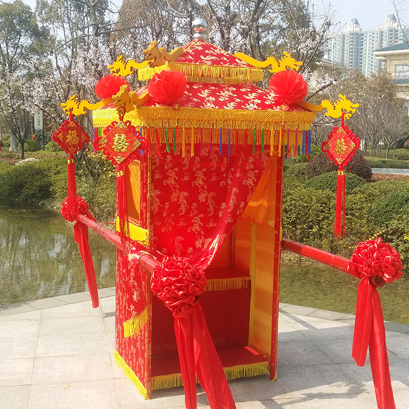 Golden wedding wedding film and television props Dragon and phoenix figure folding sedan chair Sedan chair Wedding supplies Chinese bridal wedding sedan chair