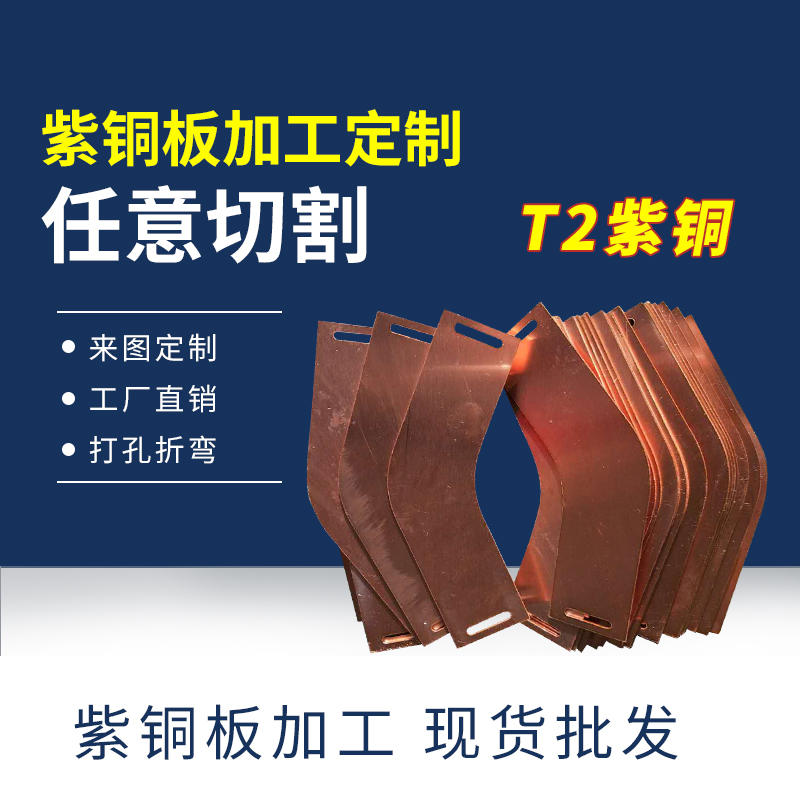 T2 copper plate, copper sheet, copper strip, copper skin, red copper plate, red copper row, red copper row, laser processing, zero-cut customization