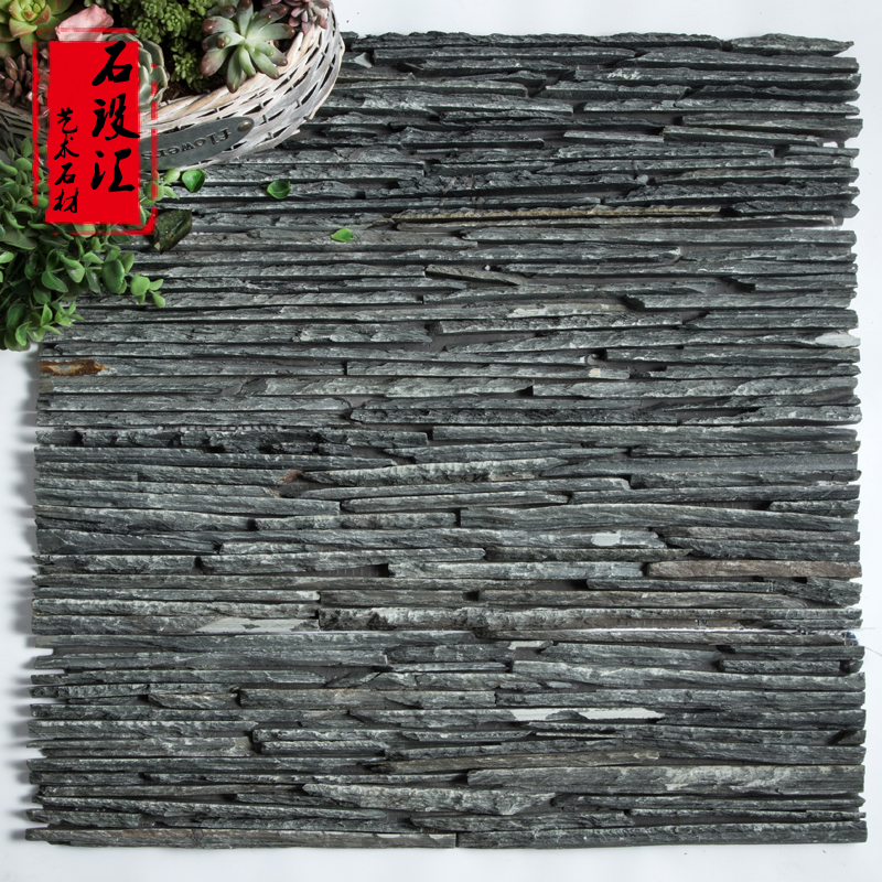 Vin Fossil Stream Water Stone Background Wall TV Water Curtain Wall Natural Black Brick Plate Brick External Water Slate Villa Garden