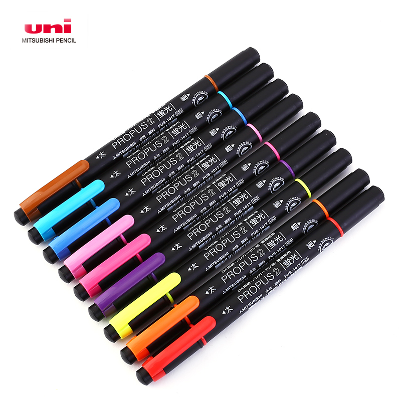 Japan imported uni Mitsubishi double-headed fluorescent pen color PUS-101T Propus2 water-based marker pen Office student notes hand account key mike pen marker pen multi-color set