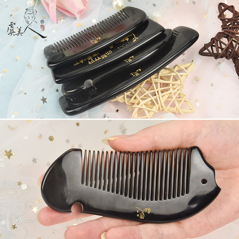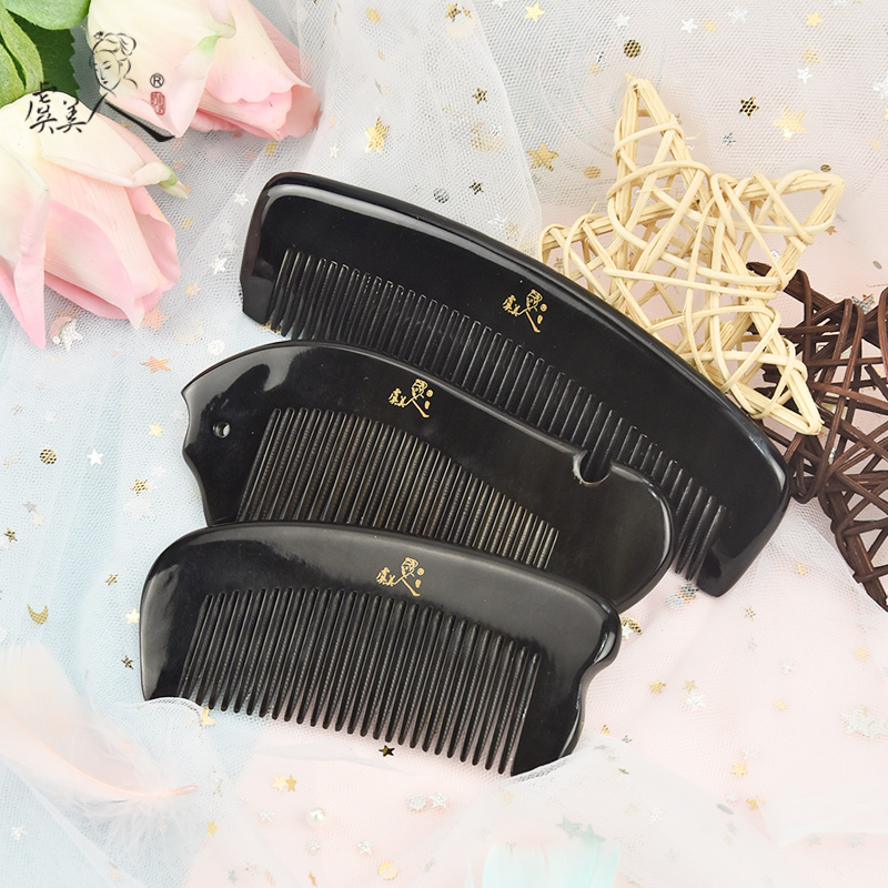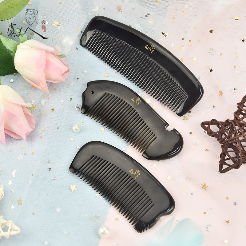 Poppy natural buffalo horn small comb portable mini black children comb small massage lovely dense teeth