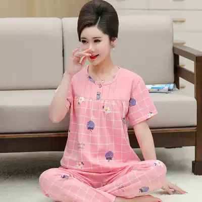 Summer women's short-sleeved trousers cotton pajamas thin pullover middle-aged mother plus size suit home clothes