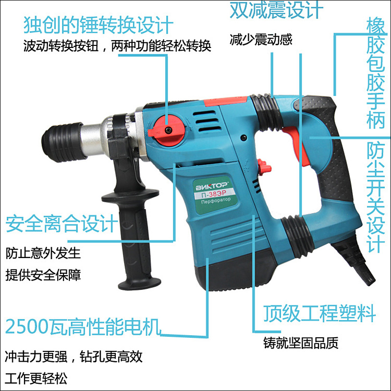 Export Russia 38mm electric hammer drill power tools multifunction home 2500w percussion drilling electric pick Dual use