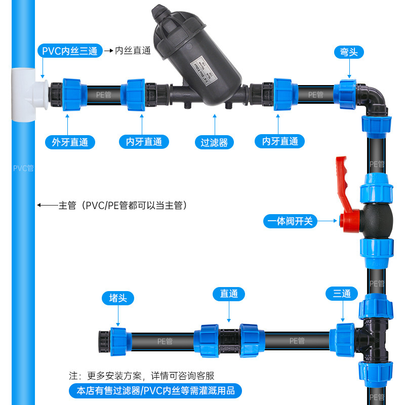 PE pipe fittings PE pipe straight-through tee elbow choke plug irrigation pipe drip irrigation pipe capillary garden sprinkler irrigation greenhouse accessories