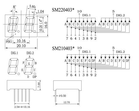 LED digital display module Digital module dual 0 4 inch glow tube co-yin super bright red SM220403D3B