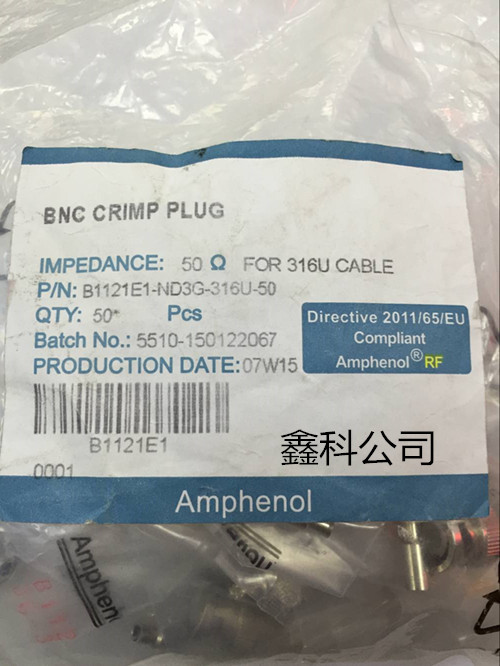 Imported connector BNC male Amphenol B1121E1-ND 3G-316U-50 to RG316 50-1