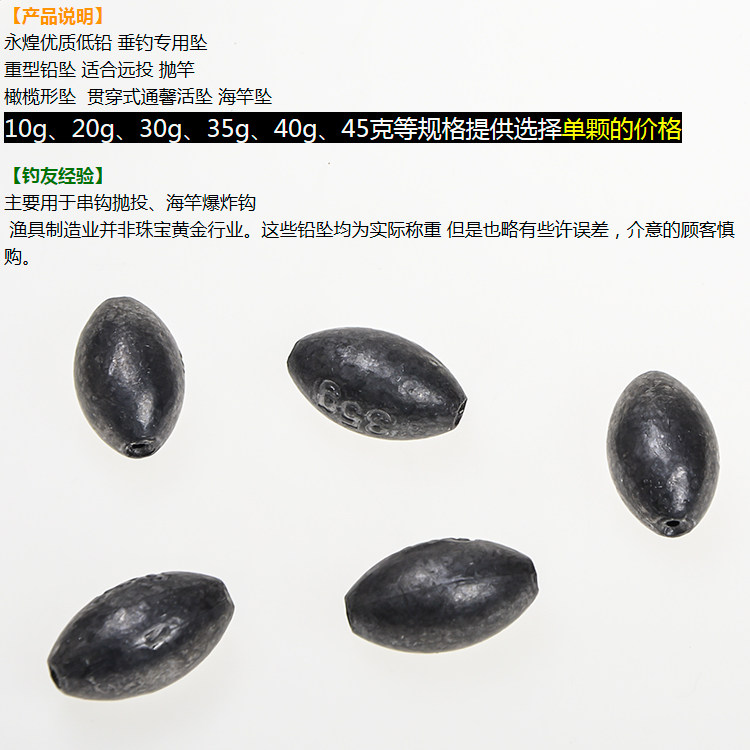 Yonghuang Lead Pendant Olive Shaped Fish Pendant Through Fishing Counterweights Lead Hand Rod ROD STONE WITH LEAD PENDANT BULK ACCESSORIES
