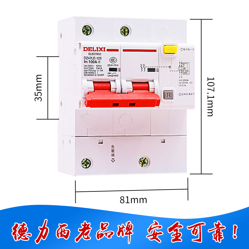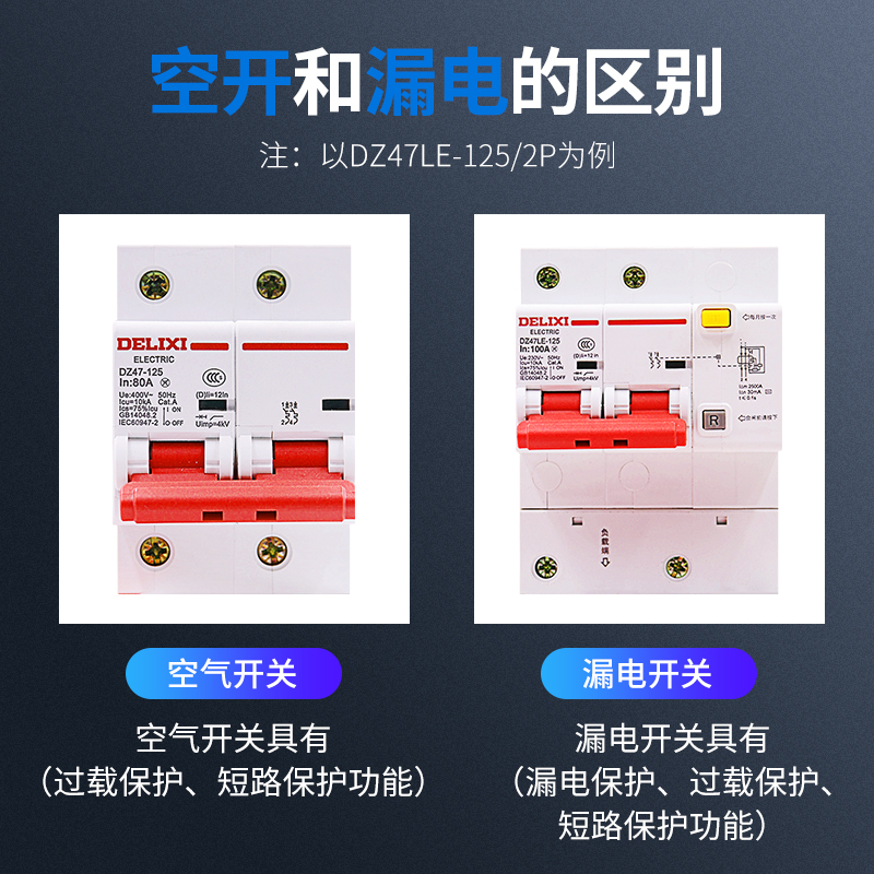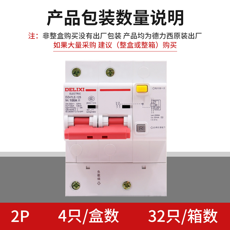 Delixi leakage circuit breaker DZ47LE-125 2P air switch 125A leakage protector 100A household