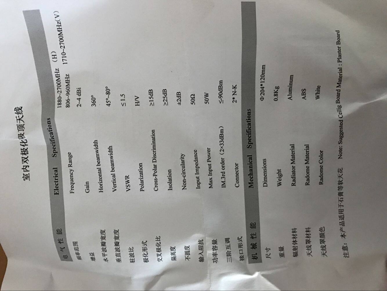 Indoor dual-polarized omnidirectional suction top antenna 806-2700M indoor coverage dual-polarized suction top