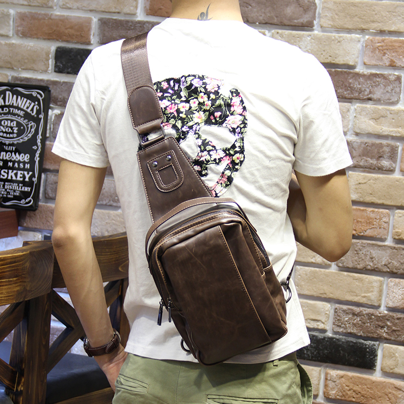 Leather Men's Chest Bag Korean Casual Leather Waist Bag Trendy Men's Bag Leather One Shoulder Backpack Crossbody Small Bag Running