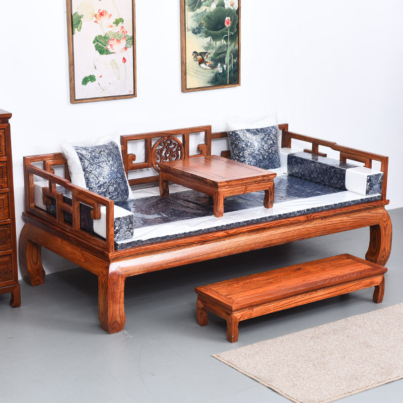 Classical modern Chinese solid wood Arhat bed Ming and Qing sofa bed elm Arhat bed antique hook Arhat bed