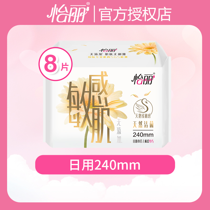 Yili sanitary napkins natural cleansing bacteria new muscle sensitive cotton soft and slim daily use 240mm8 pieces to 23 years