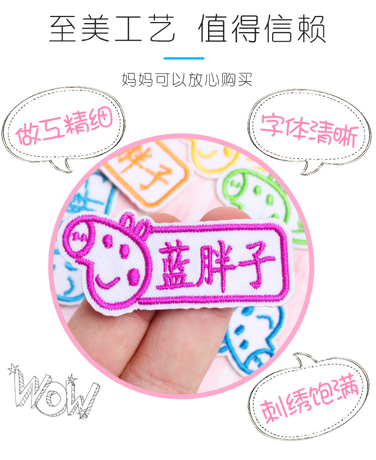 Name stickers embroidery kindergarten waterproof baby children primary and secondary school uniform clothes custom name cloth stickers can be sewn