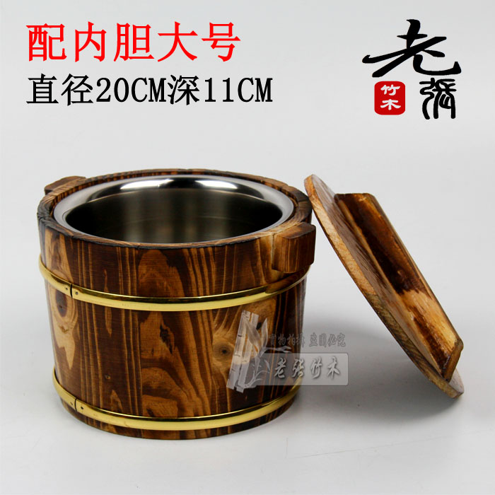 Wooden bowl basin hotel restaurant home leisure farm table table serving rice insulation environmental protection lunch box stainless steel liner optional
