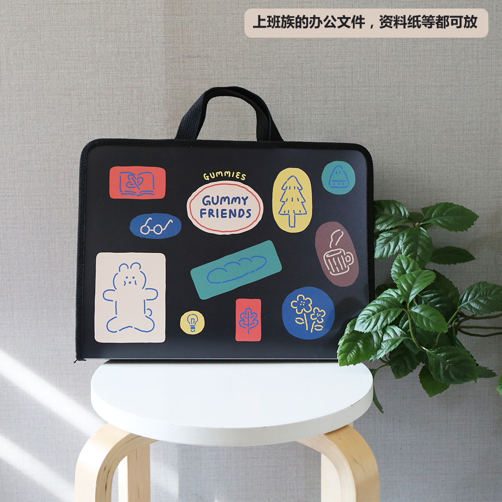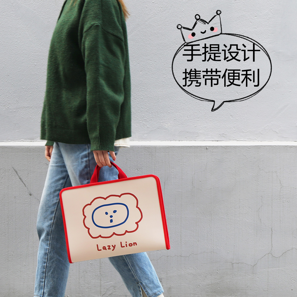 Korean stationery romane cute student tutoring bag portable zipper A4 document bag Information bag Portable briefcase